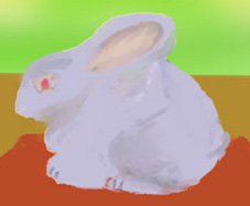 枝付きのミニトマト細い枝 トマトのテカリ 美味しそうで摘まみたくなりそう。ミニブロックの干支のうさぎさん難しかったでしよう。 |