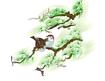 今年初めてのフラッシュ画です。松に雀です 松葉の細い線が難しいでした。ぼかしは 先生に教わり初めてつかいました。