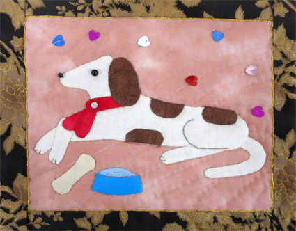 戌年の犬をアップリケで作りました体の模様 耳 ネクタイ