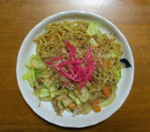 焼きそば 冷蔵庫の整理を兼ねて使い切ります そばは二人で一袋と半分使います そばは最初にフライパンで焼き付けてさばいておきます |