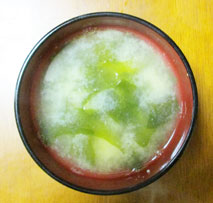 味噌汁の実には定番のワカメ豆腐 ワカメは多めに戻しておいてきゅうり ちりめんじゃこと酢の物にします |
