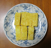 だし巻き卵 一回に卵大なら二個 小なら三個ぐらいで三回位にして流し込んで巻いていきます |