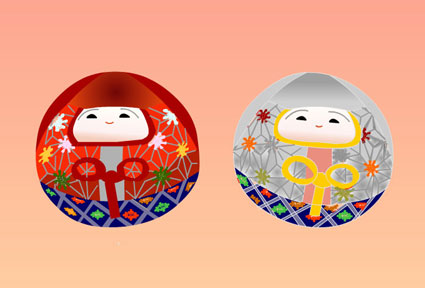達磨人形と呼んでいます。男の子と女の子のセットになってましたフラッシュ画ですが直線が多かったので わりに描きやすかったです。 |