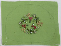 表布にビーズで刺し終わった
