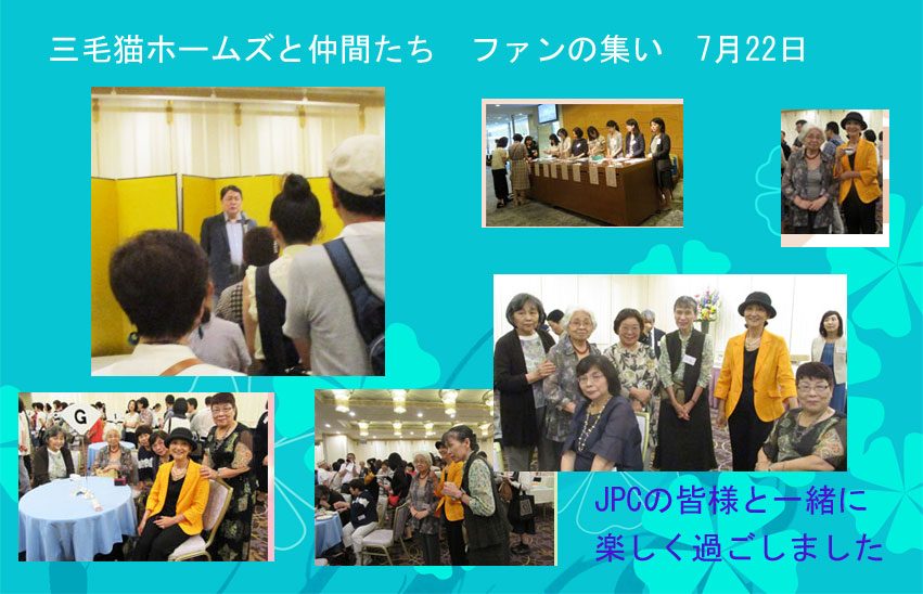 | 2018.07.22 ファンの集いで 大勢集り 赤川次郎先生のご挨拶のあと和やかに お食事会があり最後に各テーブルごとにクイズ大会あり10問くらいありました。これがなかなか難問であたりません。わいわいがやがや楽しく過ごしました。 |