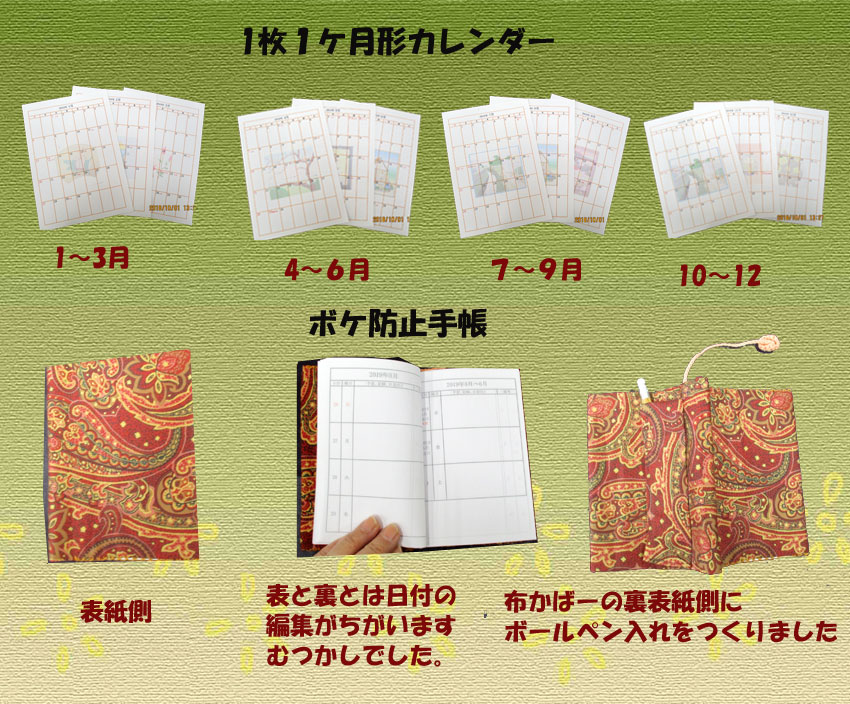 | 2018.10.01 2019年度のカレンダーとボケ防止手帳が出来上がりました。 |