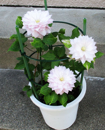 昨年の母の日に貰った「クレマチス」です。その時は鉢いっぱいに綺麗なピンク色でしたのに今年は株も少なくなり花色も白に近いうすいピンク色です。肥料がたりなかったのかな?と思っています。ネットで検索して来年はもう少し綺麗に咲かせようと思います。