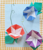 折り紙で朝顔を作りました。作り方の説明で割にやさしく出来上がりました。ワイヤーで蔓を作り葉っぱも作りました。それから飾るためには額縁を作ろうとして,さて