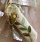 | でこちゃん 細い溝にチリメン布をはめ込んでいくんですね。布が重なったらたいへんでしよう。可愛いです。 |