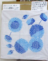 | よねちゃん「ステンシルデ作ったダリア模様のハンカチ」 型紙一枚でこんなきれいなハンカチになるのですね。 |