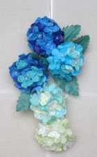 くわちゃん「華やかなペーパーフラワーあじさいの雫」花びらすべてに薄紙を二重におりその間に違う薄紙を入れ作っていきます。 |
