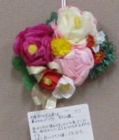| りりちゃん「華やかなペパーフラワーボタンの舞」薄紙なので大変でしたでしよう。素晴らしく出来上がってますね。 |