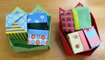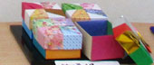 まっちゃん「可愛い小箱」千代紙の組み合わせですばらしい模様に出来上がりますね。 |