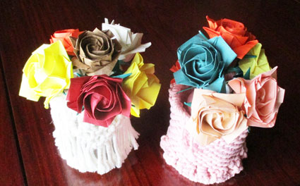 『サトウローズ』の折り方ですがなかなか難しいでした。教室で先生に手取り足取りして教わって作成したものです。説明がつかないほど難儀しました。 |