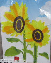 皆さんがそれぞれすきな花を選んで作成しました。百合の花 ハイビスカス チュウリップ カーネーション バラの花 朝顔 あじさいです。みんな素晴らしい出来栄えですね。 |