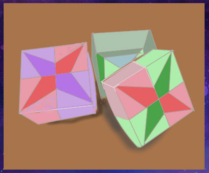 可愛い蓋付き小箱を作りました同じものを四個折り組み合わせていきますが それぞれ上下と合わせてそれから四方を中心に向けてち締めていきます。四か所綺麗に合わさったら出来上がりです。 |