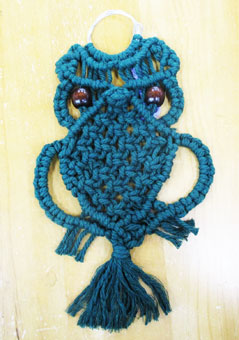 マクラメ編みの『ふくろう』二度目の挑戦です。二度目ですので大体のことは解りましたが やはり耳のところが幾ら考えてもわかりませんでした何回かやり直しましたがダメでした。