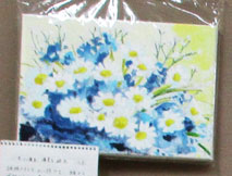 優雅な絵画でマーガレットです。油絵のように下絵に塗っていきます。下絵にはぬりえのように色の番号が書いてあってその色を重ねて塗っていきます。濃淡を付けて塗ると立体感が出てきます。 |