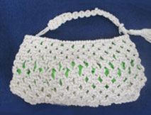 yokkoさん「まクラメアミノポセット」バックのふたのダイヤ柄しっかりと編めて綺麗ですね。