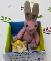 ぬいぐるみのラビットあぐらをかいて可愛いです。 |