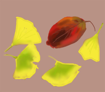 今林公園で拾った落ち葉をクリスタ画にしました。銀杏の葉っぱと櫻の葉っぱ(とおもいますが)他にも知らない葉っぱがありましたが銀杏の葉っぱだけでは味気ないので赤く色ずいた葉っぱを入れて描きました。