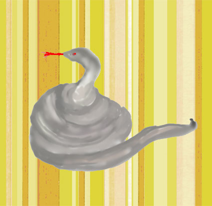 今年の干支の巳をクリスタ画にしました。とぐろを巻いているところを立体的に描くのに苦労しました。巻いているすじに少し濃い目の色を入れました。 |