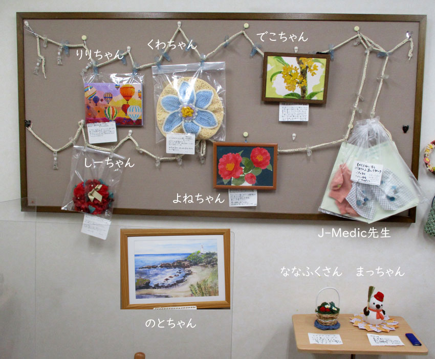 | 2025.02.01. ミニ展示会です。皆さんの力作です。今月は抽選会で頂いた物が多いようです 一生懸命頑張っておられる姿が目に浮かみます。まっちゃんとななふくさんとのとちゃんが離れ離れになって申し訳ありませんでした。 |