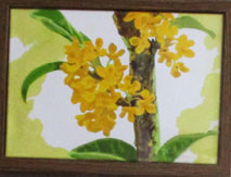 絵筆で塗り咲かせる和歌の絵画(金木犀)油絵のように記号通りに色を重ねていくのですね。 |