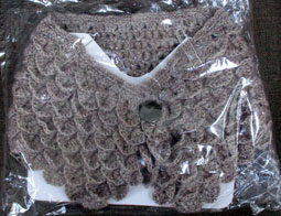 ネックウォーマーうろこ編み珍しい編み方ですね綺麗に編み目がそろって素敵です。春先にブラウスの上に重宝しますね。