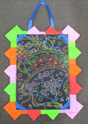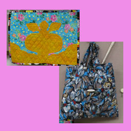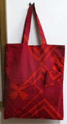 | よねちゃん 「ステンシルノ布バック」色鮮やかなハイビスカスの花お稽古道具を入れるのにもってこいですね。 |