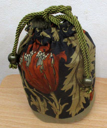「アネモネの丸底巾着」生地の柄が素敵ですね。丸底と紐とうし、など大変だったでしよう綺麗に出来上がってますね |
