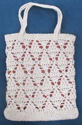 ななふくさん 「パイナップル編みの手提げ袋」細い糸2本どりで編んだとおっしやってましたが針目が綺麗にそろって素敵です。 |