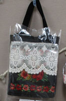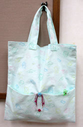 かぎ針で編んだモチーフを袋に縫付けてまっちゃんらしくいいアイデアですね。 |