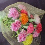 ミニ展示会の作品です。手のひらサイズの編みぐるみ 立体切絵のガーベラ 油絵まがいのサンフラワー 型紙なしで作る帽子 カーネーション お手玉のうさぎとその他の小物 ランチョンマット等々 抽選会で頂いたもの再利用での作品皆さんの力作です。 |