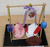 | りりちゃん 『お手玉うさぎと栗 クロスステッチのりす クラフトテープのミニランドセル 細かい作業で目がくらみそうさすがりりちゃんの力作素晴らしい。 |