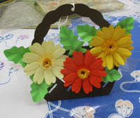よねちゃん 『はさみを使わない立体切絵 ガーベラ』台紙からくり抜いて、花びら、花芯をつけ葉っぱに折り目おつけて葉脈としてバックに貼って素敵になりましたね。 |