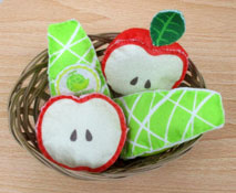 プリント・フェルト(リンゴとメロン)綿を入れて縫い目を揃えるのが難しいですね。綺麗に出来上がっています。