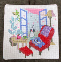 季節のクロスステッチ窓のある風景「春うらら」細かいマス目きれいに揃ってそろっていますね。