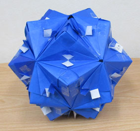 これは私の作品です。菱と蝶の折り方です。ブルー色で小さい四角がしろ色になって綺麗かなと思いましたが、思ったほどではなく残念。つき合わせの白色がきっちり開かず閉じてしまいそうです。次からは気を付けるようにしましよう。