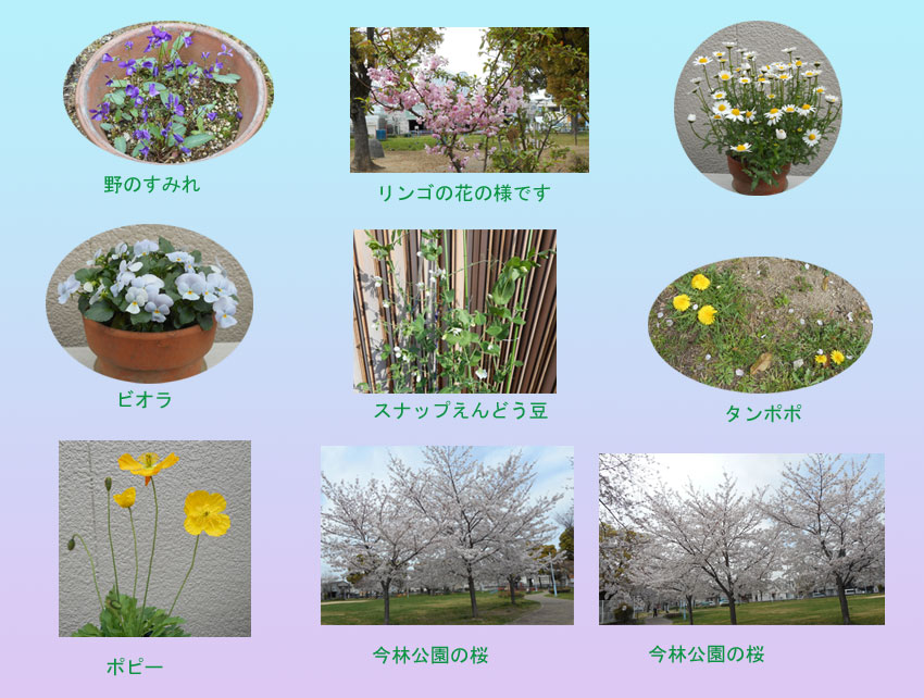 | 毎年この時期には体調が悪くなり、過敏性の鼻炎になります。お天気のいい日に今林公園をぶらぶら歩いていた時に、目についた 花を撮りました。植木鉢の花は家の花です。 |