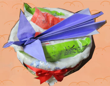 夏の抽選会で四回がらがらぽんで赤いたまが四個出てきました。赤いたまの景品は、色々ありましたが、食いしん坊の私にぴったしなラーメンを選びました。一緒に鳳凰の折鶴も入れて撮りました。